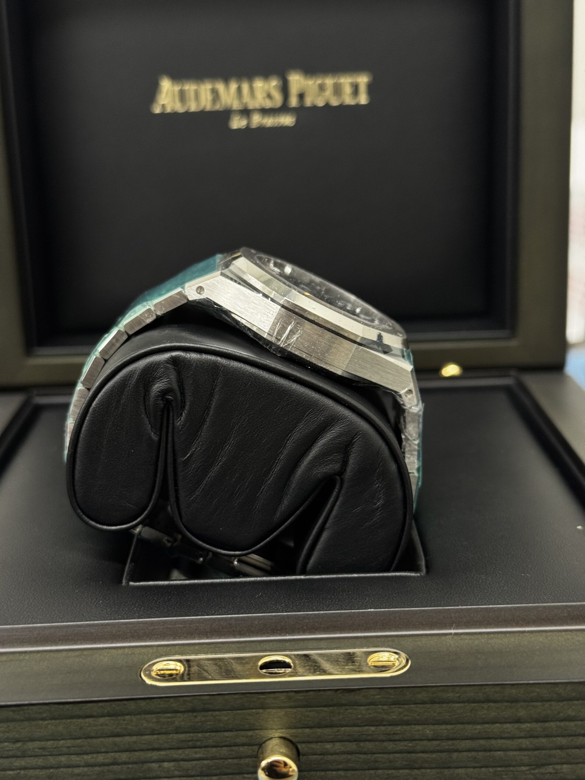 La Audemars Piguet Royal Oak Chronograph 38mm Blue Dial est une pièce iconique qui incarne parfaitement l’ADN sport-chic de la maison Audemars Piguet. Avec son boîtier compact de 38 mm, son cadran bleu “Grande Tapisserie” et son design signé Gérald Genta, elle combine élégance, technicité et proportions idéales pour un poignet moderne. Son mouvement chronographe automatique, son bracelet intégré et ses finitions haute horlogerie en font une montre d’exception, recherchée pour son équilibre esthétique et son raffinement.