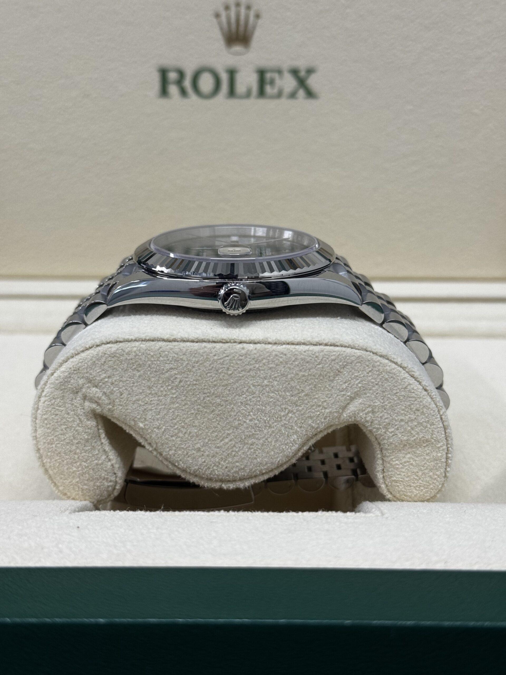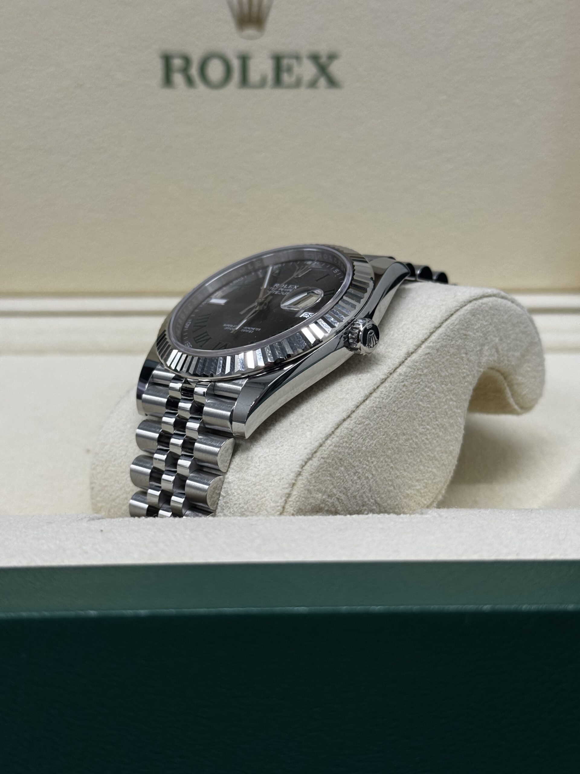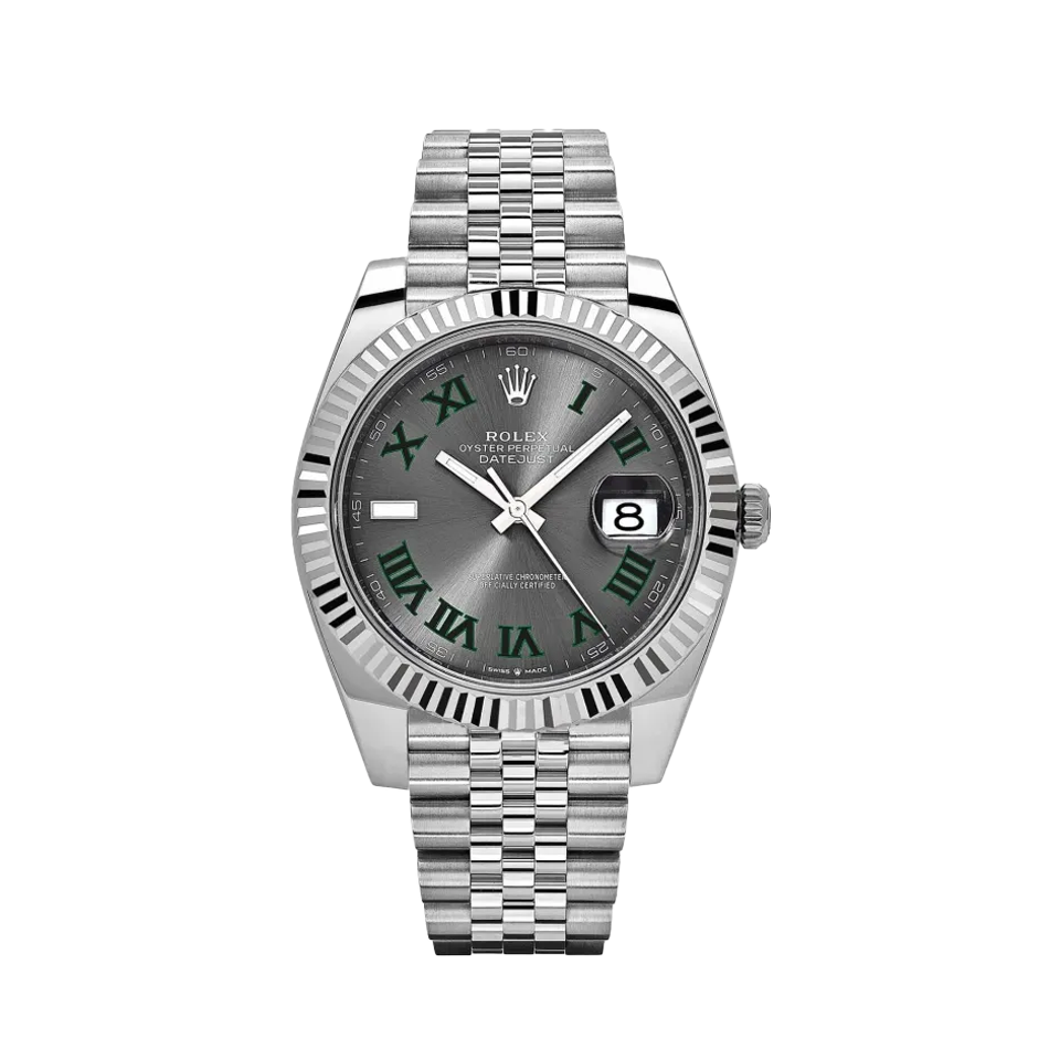 The Rolex Datejust 41 Wimbledon perfectly blends timeless elegance with sporty sophistication. Inspired by the world’s most prestigious tennis tournament, it features the iconic slate-grey dial adorned with green Roman numerals — the distinctive hallmark of the Wimbledon edition. Its 41 mm Rolesor case (a combination of Oystersteel and 18 ct white gold) delivers a harmonious balance of tradition and modern style. Versatile, precise, and instantly recognizable, the Datejust 41 Wimbledon stands as a symbol of refined performance and elegance.