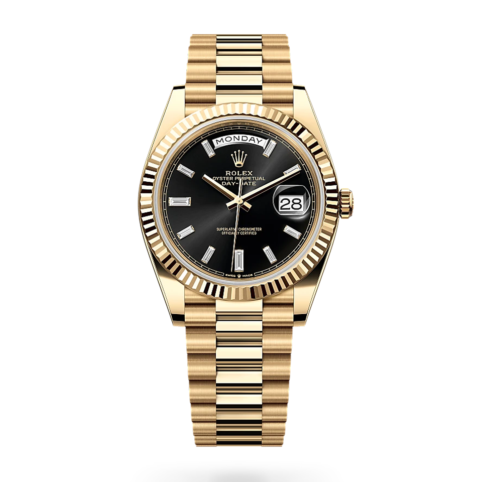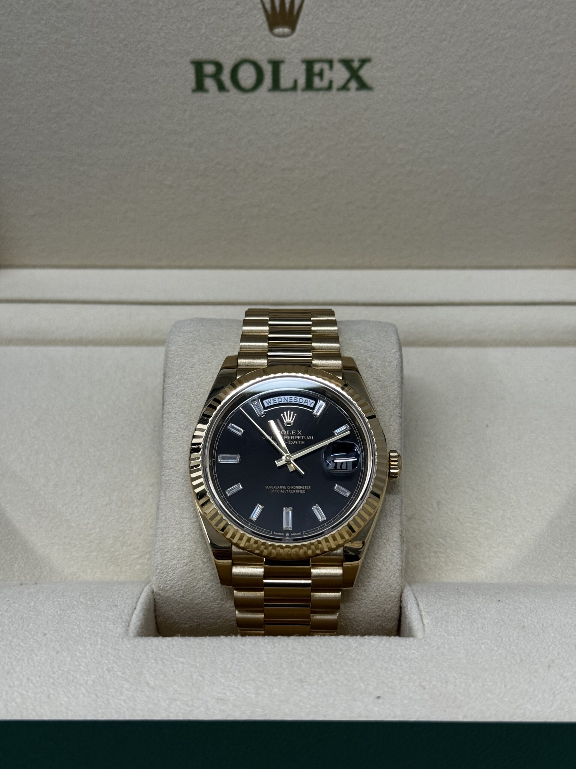 Rolex Day Date 40 Yellow Gold Black Baguette